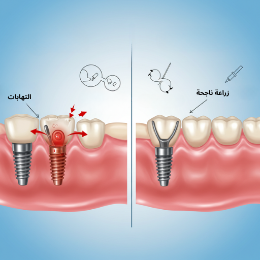السبب: قلة كثافة العظم أو عدم تقييم حالة الفك بشكل صحيح قبل الزراعة.